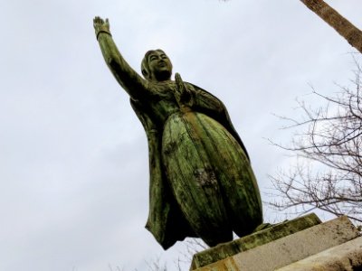 ミュージアムの裏手を2分ほど登ると、そこには天草四郎像が立っています。右手を天高く掲げており、人々を導いていた天草四郎のイメージにぴったり合致します。