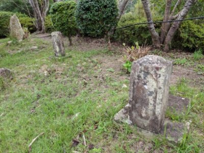 像の周辺に並んでいるのはお墓。実は十字架が刻まれているという切支丹墓碑なのです。人目に付きにくい部分を見ると、うっすらと十字架が刻まれているのがわかります。