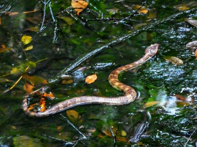 泳いでいるのはヒメハブ。ハブに比べて大人しいそう。それでも毒があるので気をつけないと。