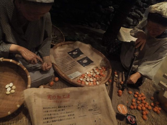 実を割って中身を取り出し、水で洗って毒素を出します。天日で干したあとは、臼でついて粉にして食べます。手間はかかりますが、ソテツも貴重な食料だったのです。