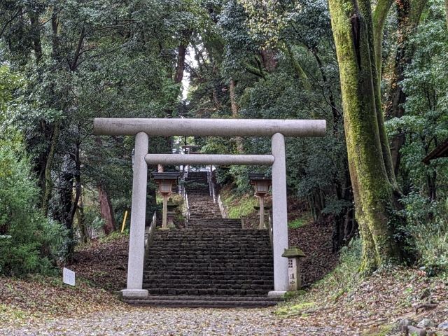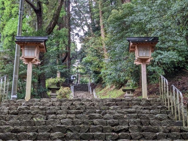 鳥居の先には100段ほどの石段が続きます。清々しい空気に包まれた参道は心地よいです。