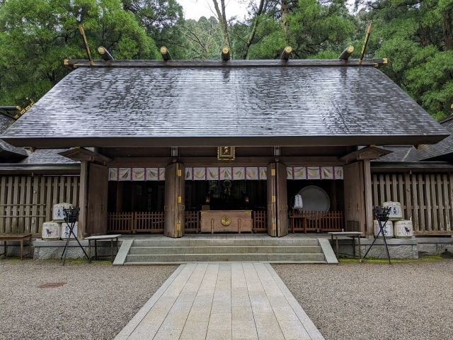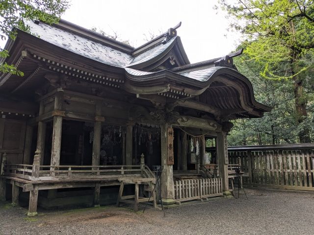門をくぐると拝殿が姿を表します。御祭神は大日孁尊(オオヒルメノミコト)。初めて名前を聞く神様だと思ったのですが、どうやら天照大神の別名であるそう。