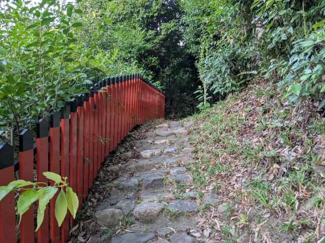 神社からは玉垣が連なる道が山の中へと伸びています。おそらく墳丘上の道なので、進んでみることにしました。どうやらこの天塚古墳は墳丘上に上れる「クライミング古墳(※造語)」のようです。