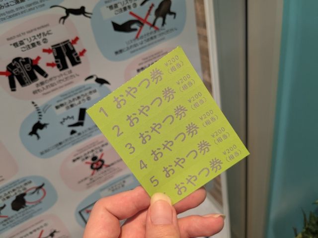 おやつ券は1枚200円。入場時に6枚セット、12枚セットを販売しており、入場後も現金でバラ売りしているようです。