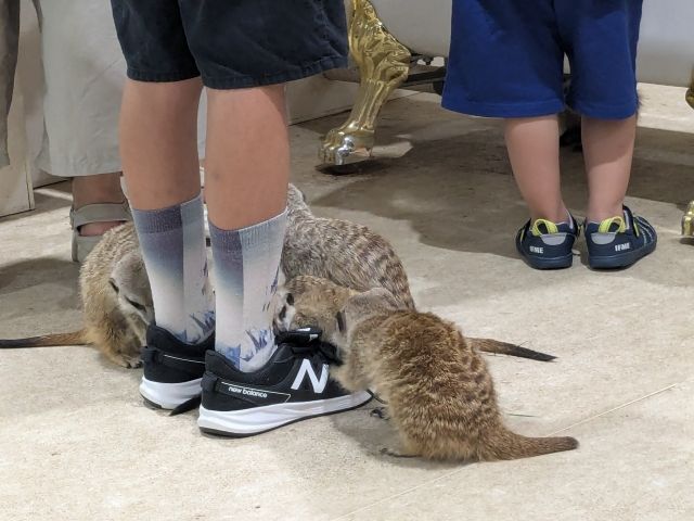 足元を駆け抜けるのはミーアキャット!特にスニーカーが好きなようで、履いている人の足元に集まっていきます。私はサンダルだったためか、見向きもされませんでした…。