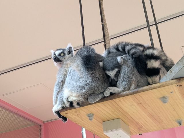 もう一つの部屋は、リスザルやキツネザル、オオハシなどアクティブな動物たちが放し飼い!とってもにぎやかです。