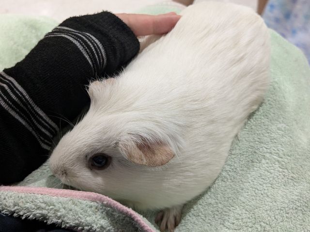 続いてモルモットヒザ上だっこもスタート。小刻みに動くモルモットのぬくもりは抜群の癒やし効果。人気の体験ですが、整理番号が配られるので他の動物と遊びながら待つことができます。