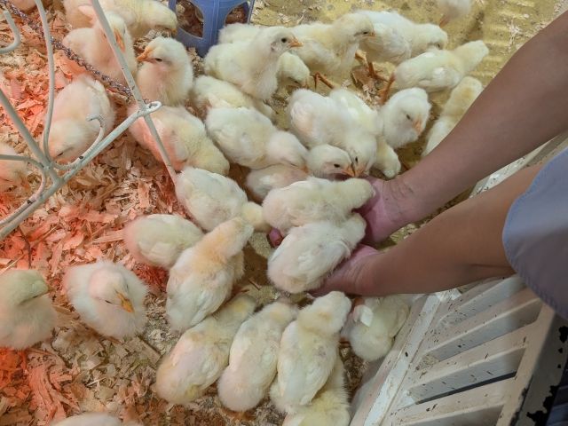 面白いのが「ヒヨコのおやつ」。手のひらに乗せてヒヨコの中に入れると、入れ食い状態!!あちこち突かれますが、ヒヨコなのでぜんぜん痛くないです。