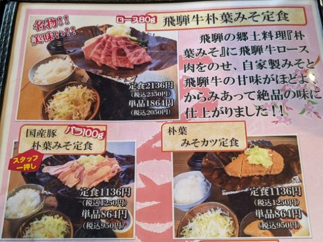 ううむ、迷いますがせっかく来たのでここは朴葉みそにしてみよう!