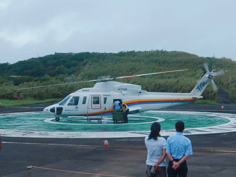 点検のため東京に行ったまま帰ってきてないそう。ヘリコプターは運行しているようですが、予約は取れていません。
