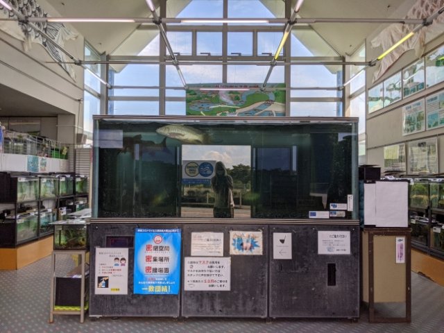 兵庫県加東市にある鴨川ダムによってできた東条湖。アクア東条はその湖畔に立つ淡水魚水族館で、1988年にオープンしました。入館料は無料なので、ドライブついでなどに気軽に立ち寄ることができます。