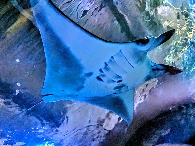なお、常に泳いでいるマンタと違ってノコギリエイはタイミングが悪いと水槽の底でまったく動きません!遊泳しているところが見れるかどうかは、エイの気分次第です。