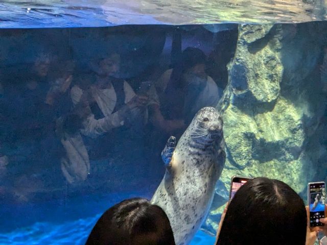 再入場可能なので、デイver.のイルカショーとアザラシのワイルドビューイングだけ見たあとは一度退館、少し時間を置いてから再訪しました!ちなみに再入場はスタンプなどは不要、購入したチケットのQRコードで普通に再入場できました。