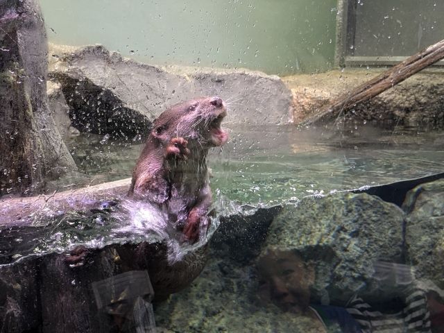2階のワイルドストリートは、哺乳類やペンギンが集まる人気のエリア。コツメカワウソは、ガラスを叩きまくるというパフォーマンスを勝手に披露。サービス精神旺盛です。