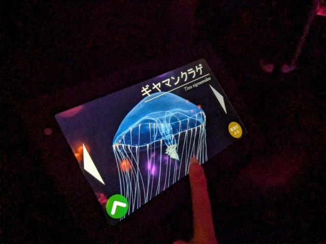 展示室にいくつか設置されたこちらのタブレットを操作すると、展示された生き物の解説を見ることができます。生き物の名前が知りたい方はこちらで。