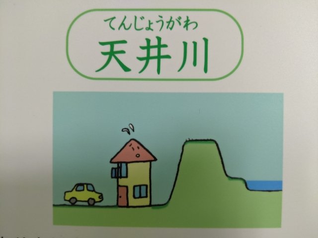 「堤防をつくる→土砂が溜まって川底が上がる→さらに堤防を高くする」、といった行程を繰り返した結果、周囲の住宅地よりも高い位置を流れるようになったそう。