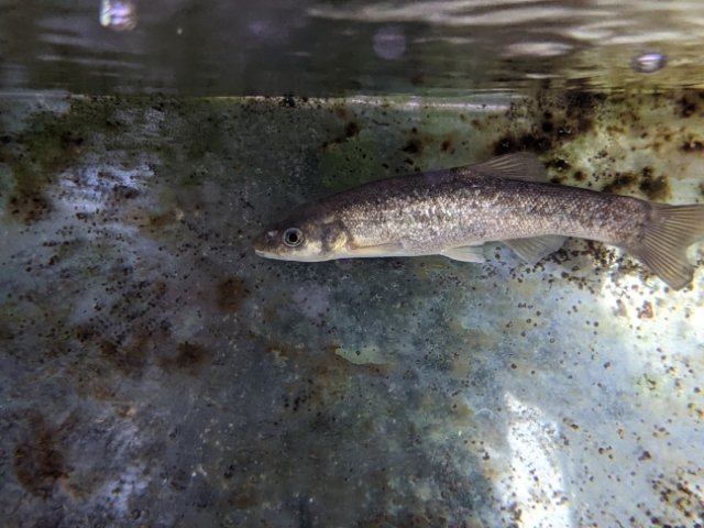 スラッとしているタカハヤ。芥川では、上流の山の中に暮らしています。近縁種のアブラハヤとそっくりで、体形や顔つきはほぼ一緒。細かい違いや生息域で見分けることができるようですが、なかなか難しそうです。