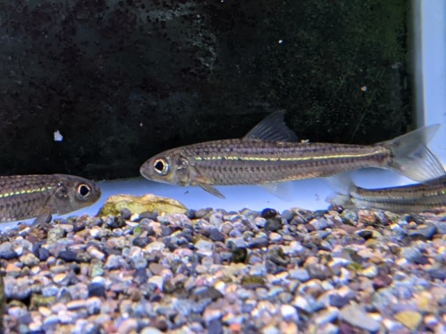 キラリと光るコウライモロコ。川底付近を群れになって泳ぐのが特徴的。警戒心が強く、人が近づくとかなりスピーディーに泳ぎ回ります。近縁種のスゴモロコとそっくりで、体形や顔つきはほぼ一緒。細かい違いで見分けることができるようですが、なかなか難しそうです。あれ、さっきも同じこと書いた気が・・・日本の淡水魚ってそっくりさんがいる確率めっちゃ高いです。