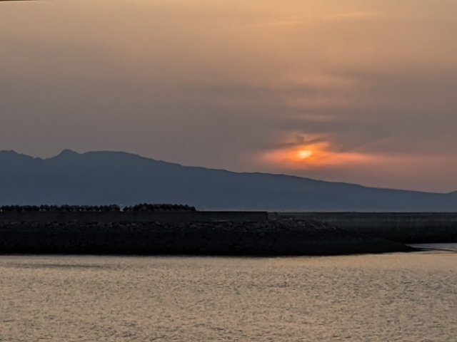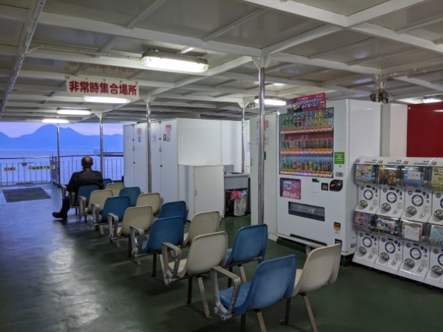 今回は18:10発の便を利用したので、ちょうど夕陽のタイミング。夕暮れに乗るフェリーは、何だか妙に情緒深いです。