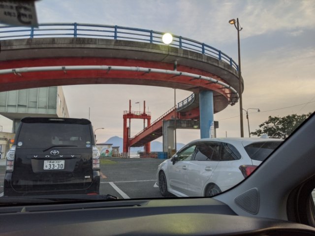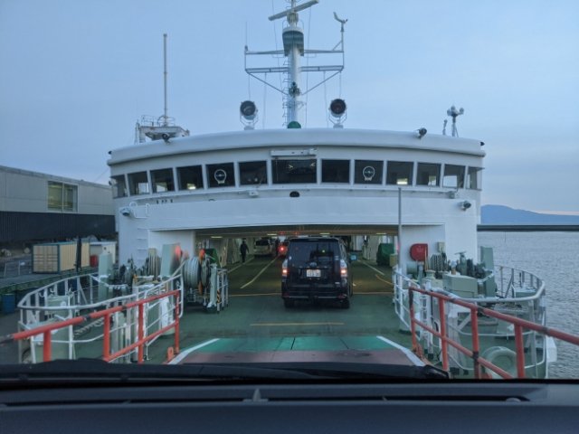 港に付いて驚くのは、乗船手続きのスムーズさ。通常カーフェリーに車を載せる場合「車から降りて車検証を持って受付に行き乗船券を購入」という一手間が必要なのですが、ここではそんな必要がありません。