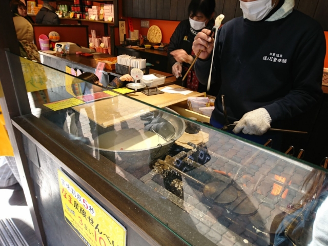 もし有馬温泉まで足を運んだならば、ぜひ体験してほしいのが、湯の花堂本舗で食べることができる「なま炭酸せんべい」。