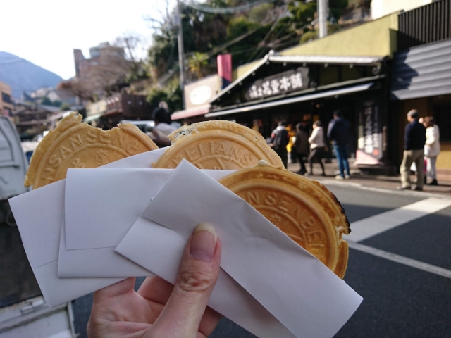 有馬温泉といえば名物炭酸せんべい。パリパリのせんべいはお土産でよく見かける定番商品です。