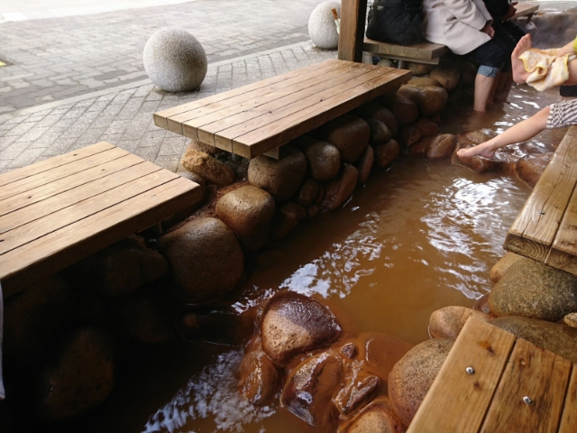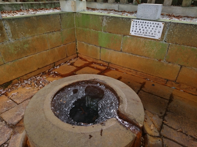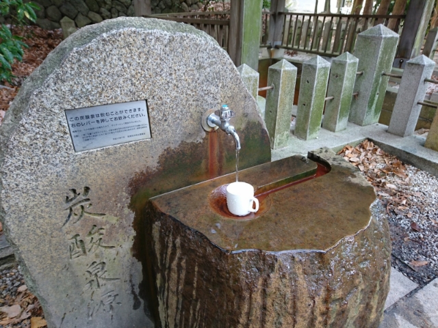 近くには飲める温泉水もあります。こちらは凍ってなかったので、ちょっと味見。炭酸泉とのことですが、サイダーのようにシュワっとはしません。でも、酸っぱいような感覚は炭酸水っぽいような・・・。なんだか不思議なテイストでした。
