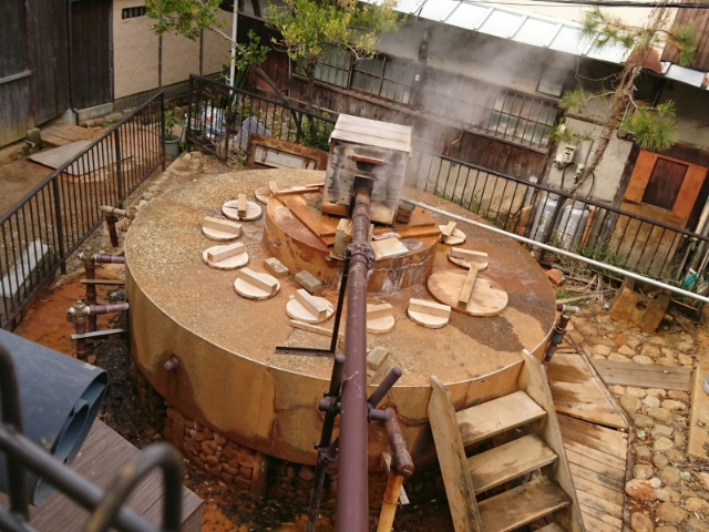 温泉街といえば、どこかに源泉が湧く場所があります。ここ有馬温泉では温泉街各所に源泉が流れ出る「泉源」を見ることができます。