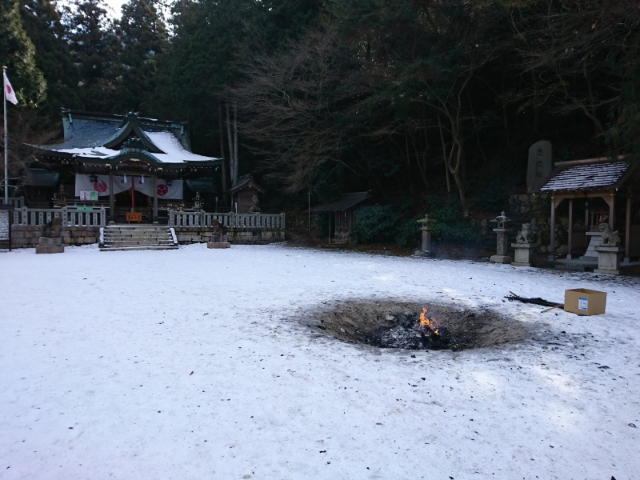 温泉街は除雪されていましたが、ここは一面真っ白。白い雪の世界にお焚き上げのような炎が上がっており、何とも不思議な世界。
