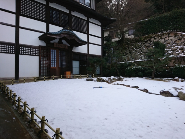 まずは庭園。埋没保存している湯山御殿庭園を復元したものとのことですが、一面の雪景色。