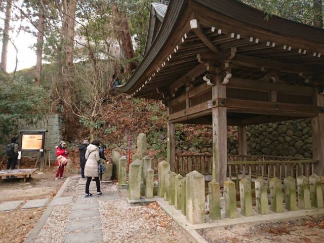 長い階段を登った先にあるのは湯泉(とうせん)神社。御祭神は有馬を最初に発見したと伝わる「大己貴命」「少彦名命」。後に熊野信仰の影響を受けて「熊野久須美命」も合祀されるようになります。先ほどの袂石は、この神様が着物の袂から取り出して投げたものが大きくなった、ともいわれています。