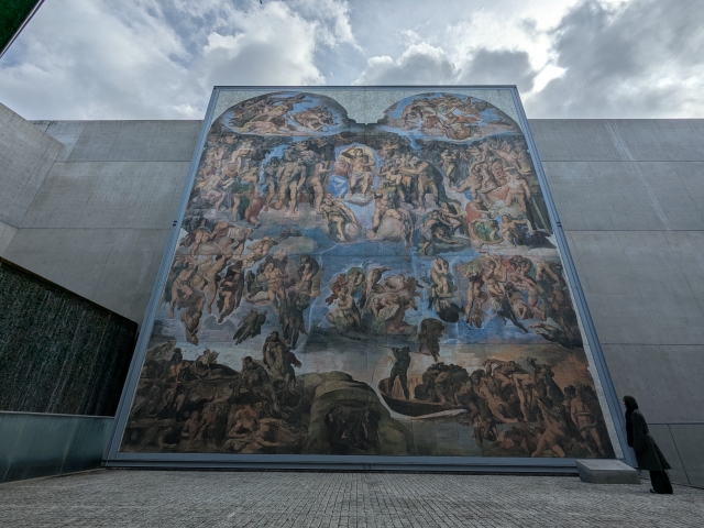 数ある作品の中でも最もインパクトがあるのがミケランジェロ《最後の審判》。バチカンのシスティーナ礼拝堂に描かれた作品、その大きさは1430cm × 1309cmと ほぼ原寸大であるそう。