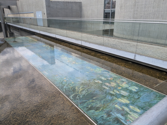印象派の巨匠、クロード・モネ《睡蓮・朝》は、なんと水の中に浸かっています!これは陶板ならではの特殊な展示です。