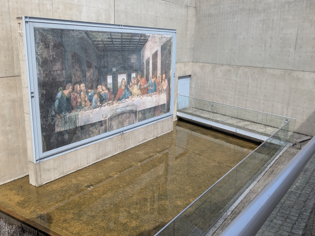 知らない人はいないであろう世界的に有名なレオナルド・ダ・ヴィンチ《最後の晩餐》。432cm × 886cmというほぼ原寸大にて展示されています。いざ目の前にすると、かなり大きく感じますね。