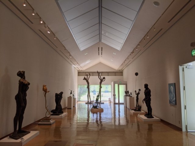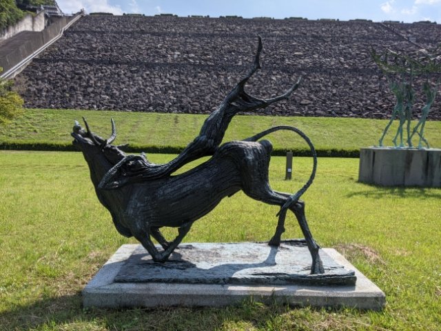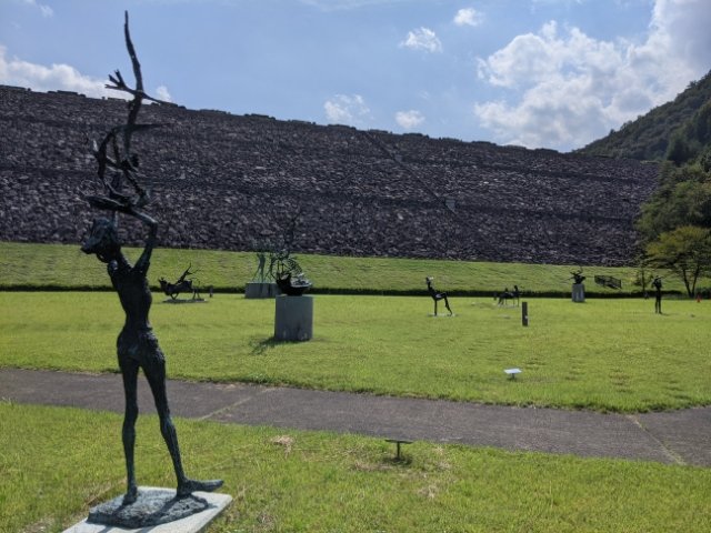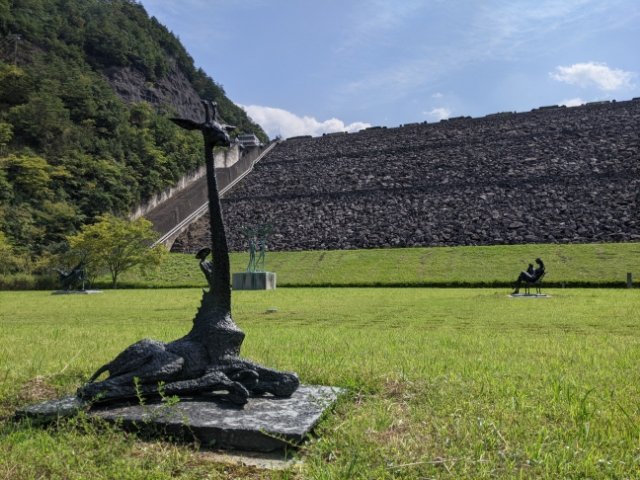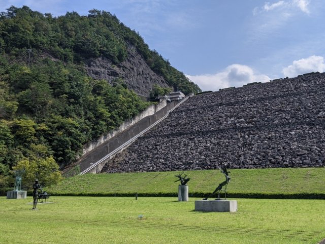 地元出身の彫刻家・淀井敏夫の作品を中心に扱う美術館。市街地から離れた静かな環境に建っており、緑豊かな自然の中で作品鑑賞が楽しめます。とにかくダムの存在感が強く、彫刻作品と合わせてオリジナリティある世界ができあがっています。