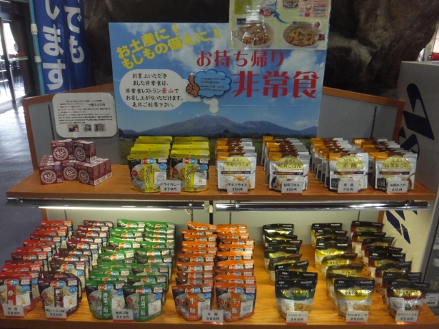 この非常食レストランのシステムは、売店で非常食を買って、ここでお湯を入れて食べるというスーパーセルフサービス。レストランの定義とは何か考えさせられますが、イメージは「イートインスペース」って感じでしょうか。