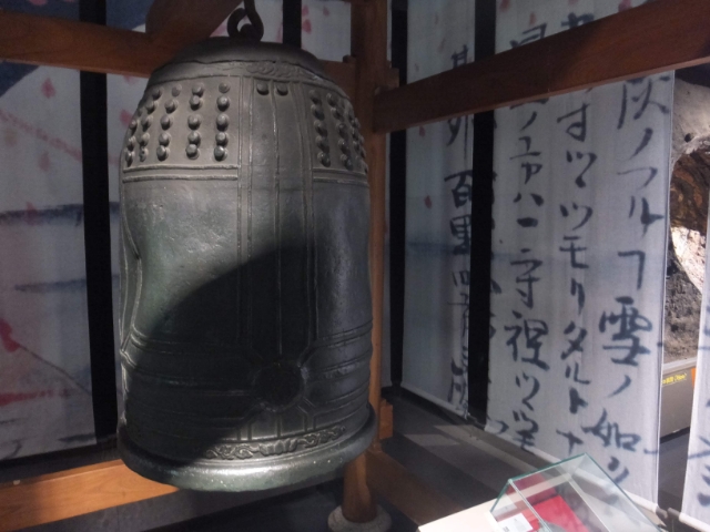 突然現れるお寺の鐘。こちらは先ほどの天明3年の噴火に飲み込まれた常林寺の梵鐘。泥流によって流され、なんと15kmもはなれたところで見つかりました。