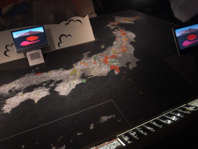 もちろん知識を深めることができる博物館要素もたっぷりあります。こちらは「日本の火山大集合」。手元のスイッチを押すと、地図上の該当する山のランプが光ります。