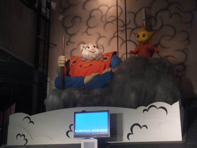 テーマパーク風な演出の通り、館内は楽しい仕掛けがたくさん。浅間山の風神(左)と雷神(右)、2体のロボットによる愉快なコンテンツもあります。