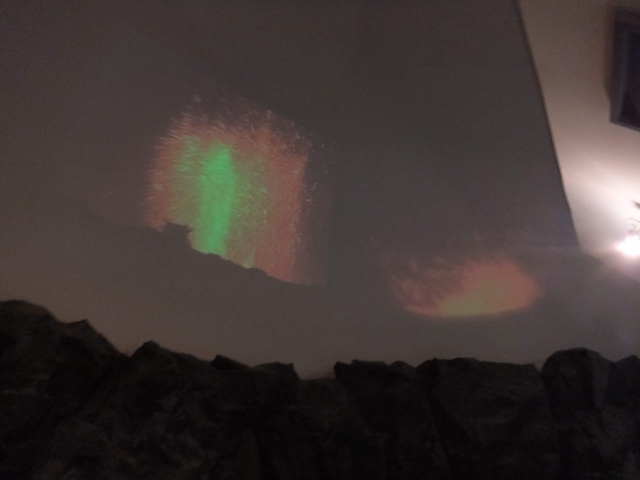 壁一面をスクリーンとした映像と光の演出も。伊豆大島の三原山や長崎県の雲仙普賢岳、ハワイのキラウエア火山などの噴火の様子が写し出されます。