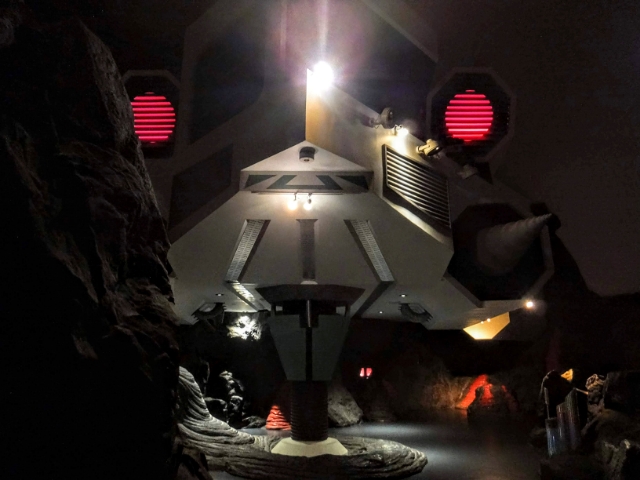 なんとなく平成モゲラのようなテイストの地底探査船。内部はシアタールームとなっています。