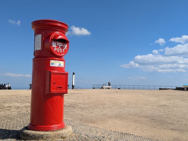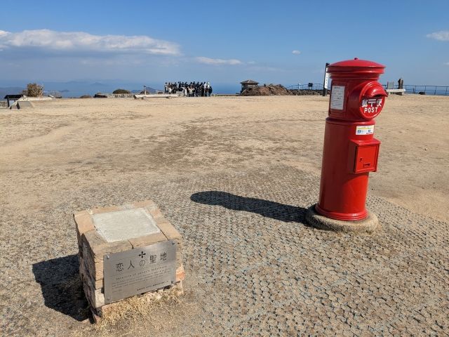 展望台にたたずむ真っ赤なポスト。山頂にあることから「天空のポスト」とも呼ばれています。ロケーションはもちろんのこと、今ではあまり見かけない「丸型ポスト」というのも魅力の一つです。