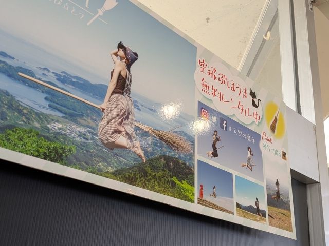 このホウキは通称「空飛ぶほうき」。こんな感じで展望台にて空を飛んでいるかのような記念撮影が楽しめるのです!