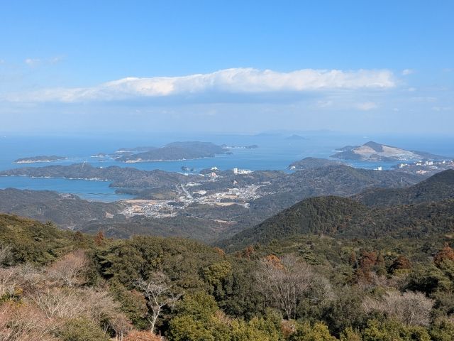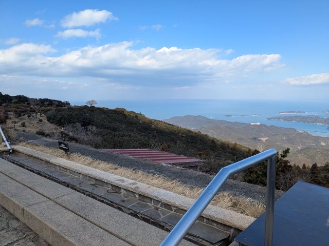 目の前に広がるのは伊勢湾。鳥羽市の離島である答志島や坂手島、神島が浮かぶ姿を見ることができます。先ほど訪問した菅島(写真右端)は、こちらから見るとほぼハゲ山です。