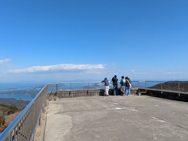 山頂はとっても広々としています。大型バスも止まっており、修学旅行らしきグループでにぎやかな雰囲気。売店や茶屋も気になりますが、まずは階段を上った先にある展望台へ!