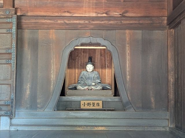 孔子像に向かって右側には江戸時代延享3年(1746年)作の小野篁像。平安時代の公卿・歌人であり、「学問の神様」と呼ばれる人物。歴史紹介でもちらっと名前が出ましたが、足利学校の創設者とする説もあります。