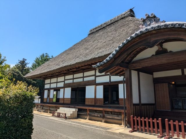 茅葺き屋根の立派な木造建築は、江戸時代中期の姿に復元された方丈。学生の講義や学校行事が行われる、学校の中心となる建物です。