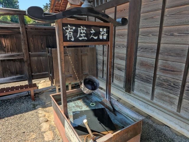 内部見学を終えて外に出た時に気がついたのですが、方丈の前にも先程見かけた「宥坐之器(ゆうざのき)」がありました!
