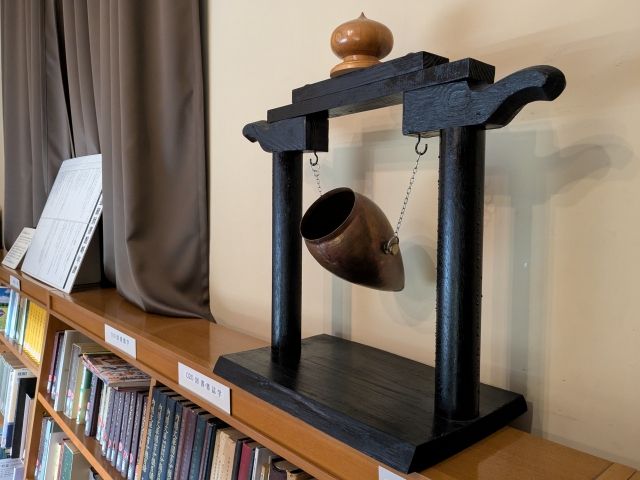 本棚の上に置かれた謎の道具。2本の鎖で器のようなものがつるされています。特に解説などはないため、私が勝手にご説明させていただきます!
