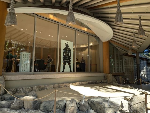 境内には「剣の宝庫 草薙館」というミニミュージアムがあります。令和の御大典事業として2021年10月に開館した新しい施設。貴重な日本刀、約450口を収蔵する刀剣専門展示館です。